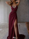 Classy Satin Ball Gown Beaded V-Neck Sleeveless High Slit Party Dress,WGP2176