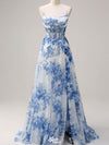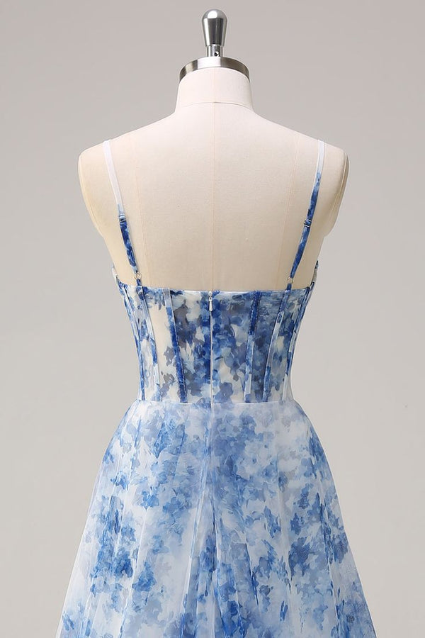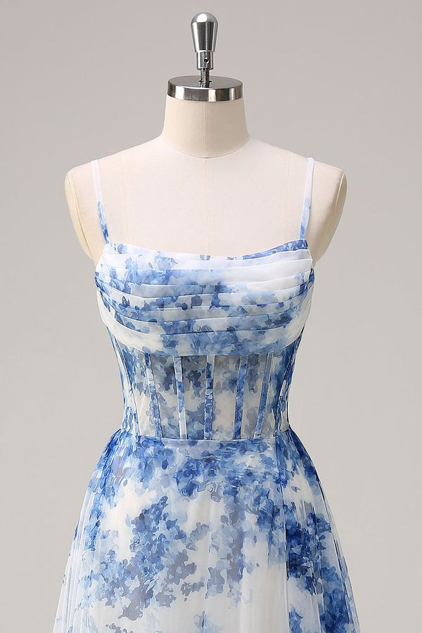 Elegant Blue Spaghetti Strap Mermaid Side Slit Long Prom Dress Ideas,