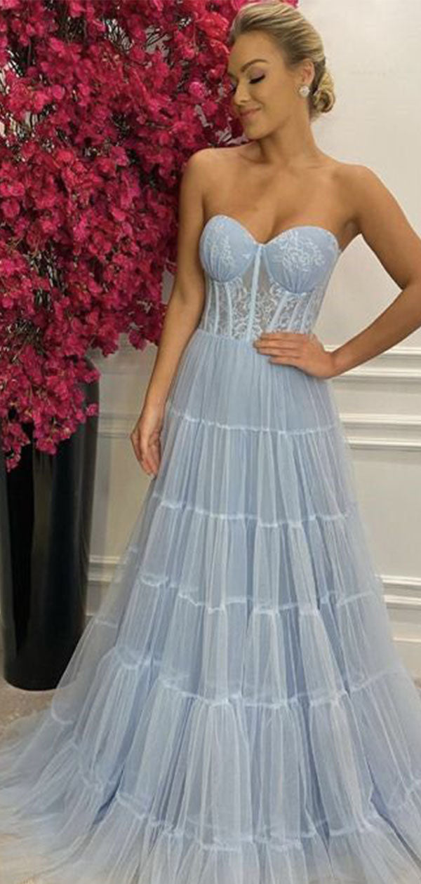 Elegant Blue Sweetheart A-Line Long Prom Dress Ideas, Evening Party Dr