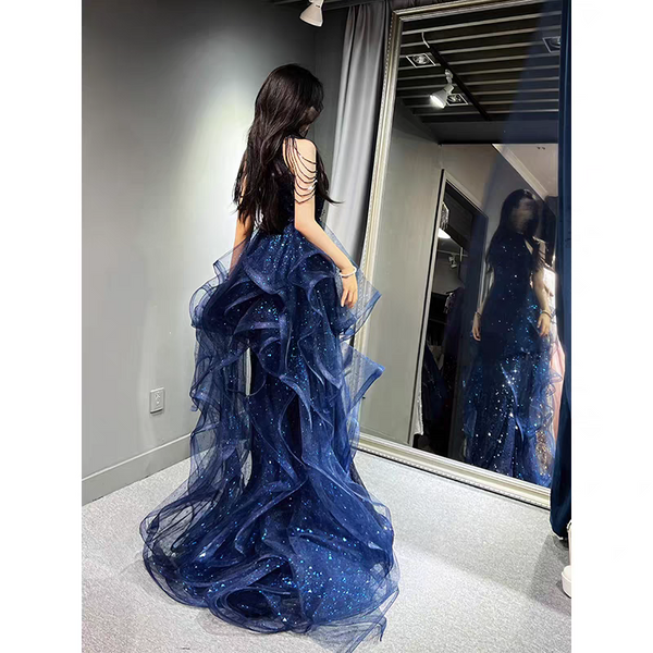 Shiny Blue Halter Mermaid Long Prom Dress Ideas, Evening Party Dresses,WGP1751