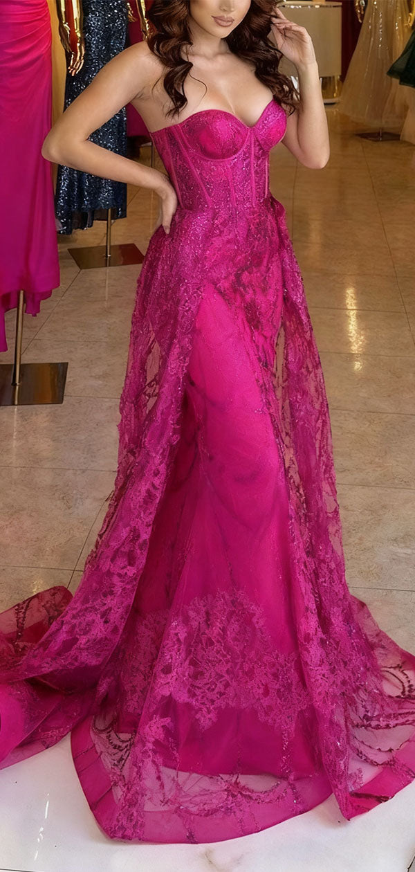 Gorgeous Pink Sweetheart A-Line Lace Long Prom Dress Ideas, Evening Party Dresses , WGP1576
