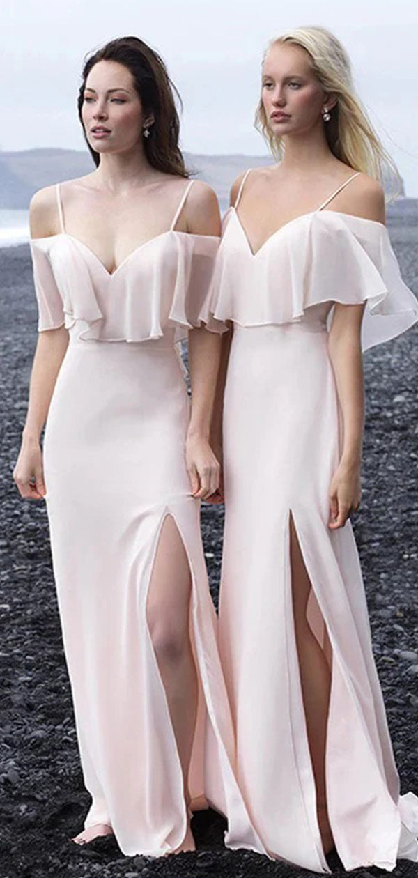 Elegant Pink Off-Shoulder Mermaid Side Slit Long Prom Dress Ideas, Evening Party Dresses,WGP1841