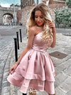 Elegant Pink One-Shoulder Short Sleeveless Homecoming Dresses For Birthday Party, EPT693