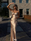 Sexy Champange Spaghetti Strap Mermaid Long Prom Dress Ideas, Evening