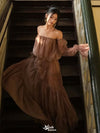 Elegant Brown Long Sleeve A-Line Long Prom Dress Ideas, Evening Party Dresses, WGP2024