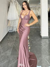 Elegant Pink Spaghetti Strap Mermaid Long Prom Dress Ideas, Evening Party Dresses , WGP1590