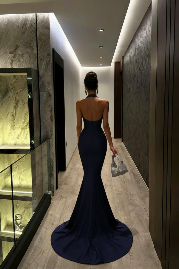 Sexy Navy Blue V-Neck Mermaid Long Prom Dress Ideas, Evening Party Dre