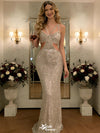 Sexy Silver Sequin Mermaid Prom Dress Cutout Waist Sparkly Sleeveless Gown,WGP2201