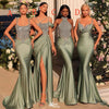 Simple Green Mismatched Sleeveless Mermaid Long Bridesmaid Dresses Online, WGM422